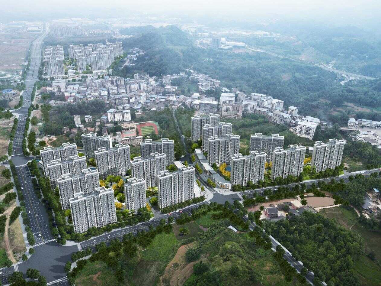 該項(xiàng)目位于四川省廣安市高竹新區(qū),總建筑面積約35萬(wàn)平方米。川渝高竹新區(qū)作為川渝兩省市共同打造的跨區(qū)域合作示范區(qū),是推動(dòng)成渝地區(qū)雙城經(jīng)濟(jì)圈建設(shè)的重要載體。中機(jī)中聯(lián)項(xiàng)目團(tuán)隊(duì)不僅致力于改善當(dāng)?shù)鼐用窬幼l件,更以“構(gòu)建高效便捷生活圈”為核心目標(biāo),規(guī)劃打造配套服務(wù)完備、教育資源優(yōu)質(zhì)、出行生活便利、自然空間多元的現(xiàn)代化安置小區(qū)。在設(shè)計(jì)理念上,以“人民的美好生活共同體”為終極愿景,創(chuàng)新性地構(gòu)建“產(chǎn)、居、景”三位一體的空間格局——既保障居民居住的舒適性與便利性,又依托區(qū)域產(chǎn)業(yè)優(yōu)勢(shì)為生活提供支撐,同時(shí)融入生態(tài)景觀設(shè)計(jì),讓社區(qū)成為“推窗見(jiàn)綠、出門(mén)享配套”的安置社區(qū)宜居典范。